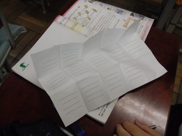 1A 技術 丈夫な構造について、「ミウラ折り」を紙で実践していました。