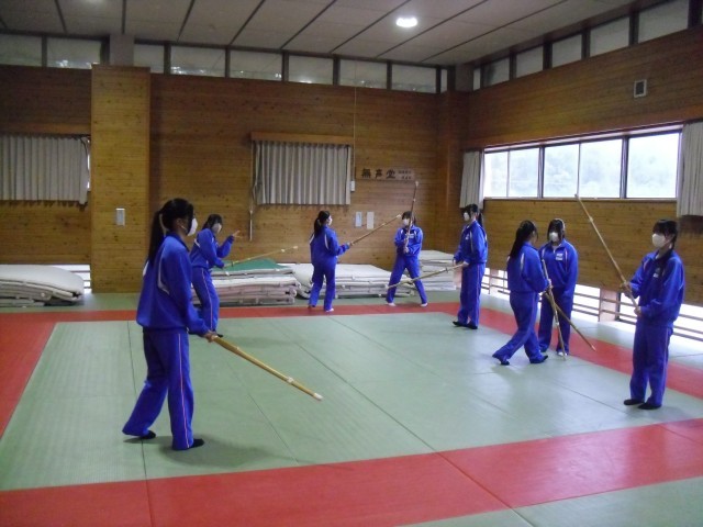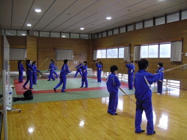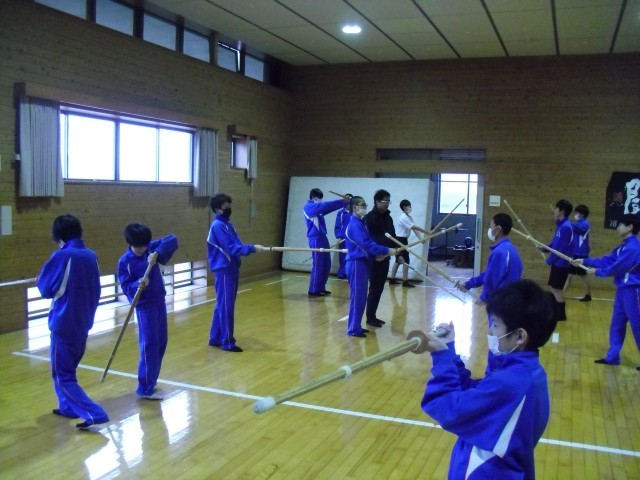 1B 保体 剣道の基本的な動き(構え・足さばき・打突)の確認と実践を行っていました。