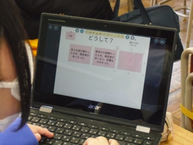 3B 社会 第一次世界大戦について、自分の意見を整理し、調べていました