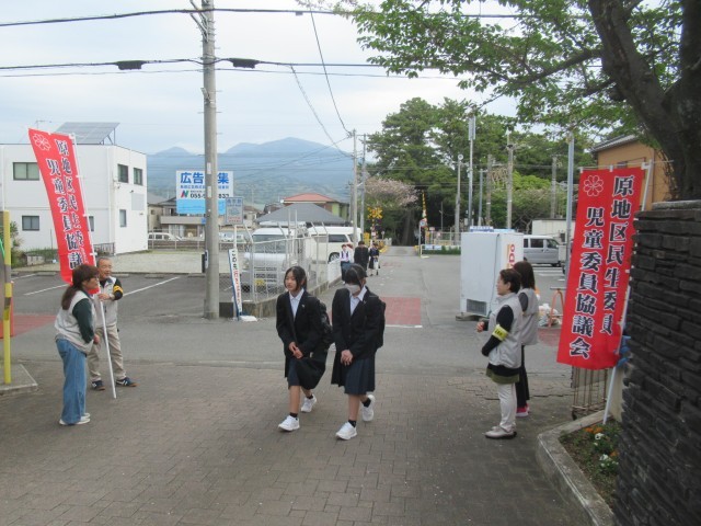 4/15 原地区民生委員様によるあいさつ運動