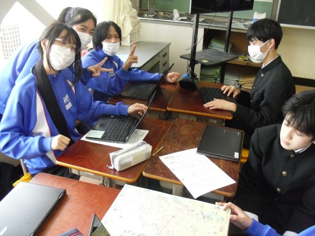 3C 修学旅行の班別研修のルートを検討していました。