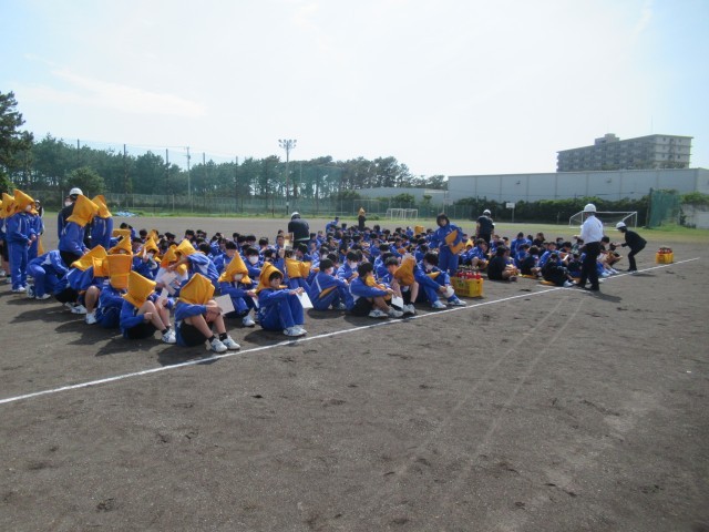 ①②学年・全体人員確認 ③④⑤整列 ⑥個人カード配付