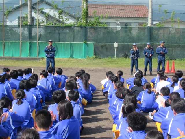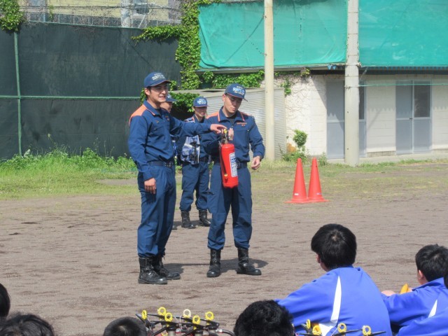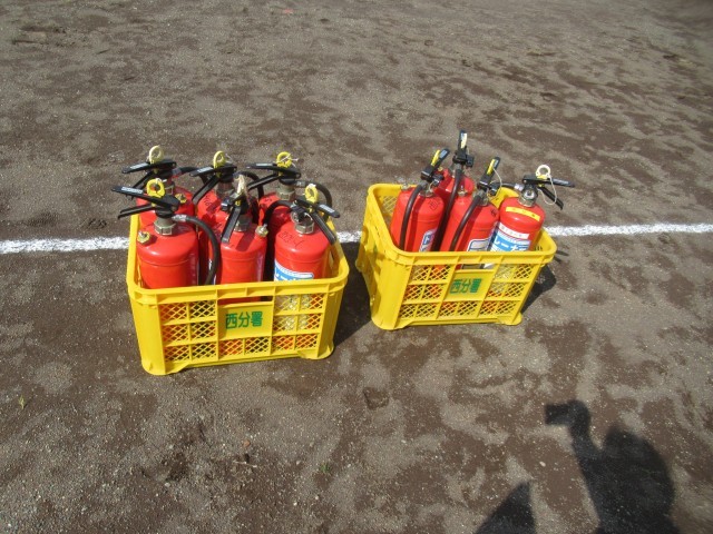 原分署消防隊員による指導講評、消火器使用の説明の様子