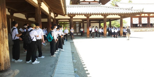 法隆寺見学中