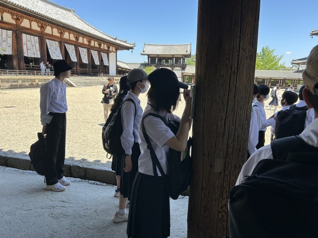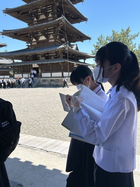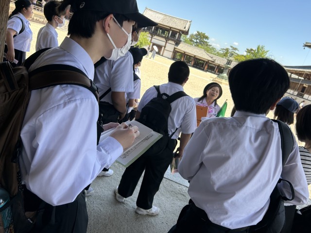 ガイドさんのお話をしっかり聞いて、メモを取り 熱心に学んでいます。