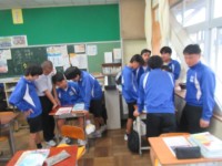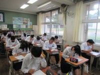 1C 英語 Unit5の復習の時間です。ワークなどを進め、先生にみてもらっていました。皆、集中していました。