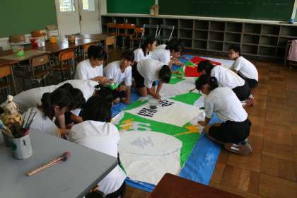 本日放課後は、潮騒祭体育の部係り会です。得点係り,出発誘導、看板係が打ちあわせや作業中でした。