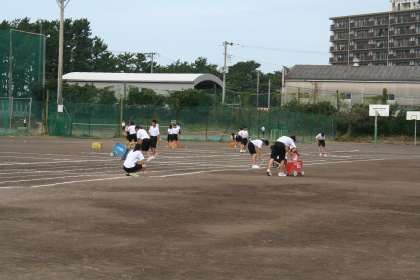 朝早くから集まって、潮騒祭グラウンド作成係がライン引きをしてくれています。今日は、学年練習が2時間ずつ行われます。