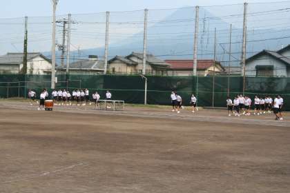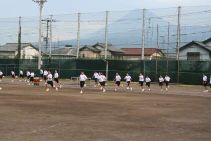 潮騒祭応援団の練習風景です。休み時間や放課後の時間が詰まっているので、この朝の時間が貴重な練習時間です。