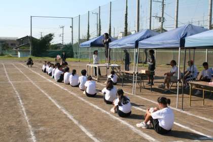 選手種目の打ち合わせを終えて、全体整列して終えました。暑い中でしたが、しっかりとできました。