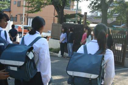 応援練習を見た後、正門に向かうと、PTAあいさつ運動が行われていました。ありがとうございました。