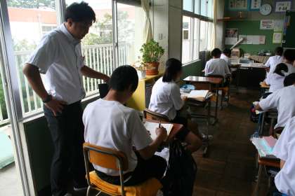授業風景(3年数学)です。TTで、吉岡先生が入っているので、分からないところは補助をしてもらえます。