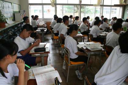 授業風景(3年社会)です。日本国憲法を勉強中でした。各制度や権利について学習を進めていくようで宇S。