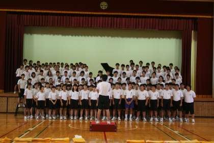 昨日、体育の部総練習を実施したため、潮騒祭合唱リハーサル(3年)が、本日、6時間目に実施されました。栗原先生から、3年生としての心構えが話され、全体合唱をやりました。