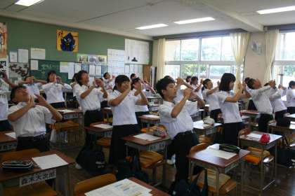 応援練習をする時間がないので、寸暇を惜しんでの練習です。