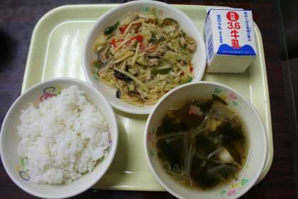 ご飯、牛乳、チャプチェ、中華スープでした。