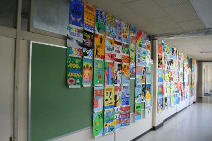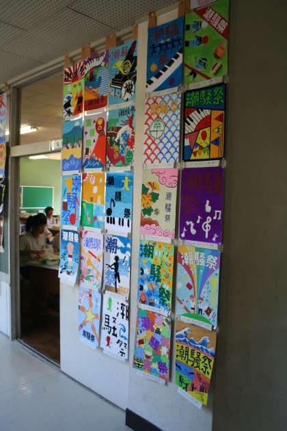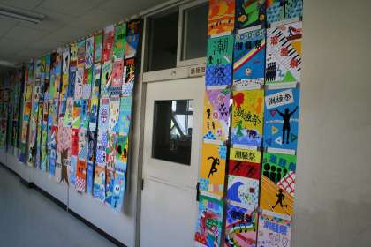 2年生のポスターも、廊下に掲示されていました。投票されて優秀賞などが選ばれると言うことです。