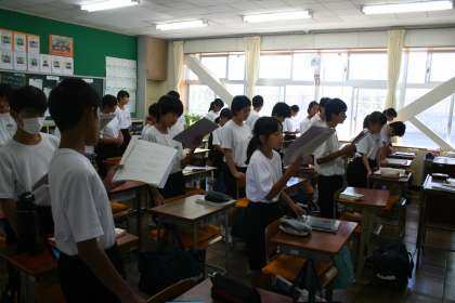 授業風景(1年C組)です。英語の時間の様子を参観してきました。英語の歌を練習していました。