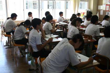 授業風景(3年A組数学)です。関数とグラフの勉強中でした。