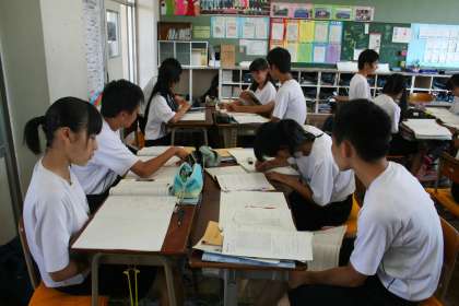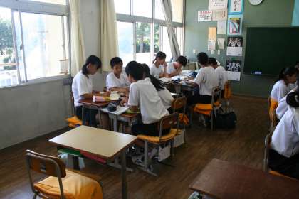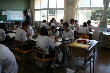 授業風景(2年B組数学)の様子も見てきました。グループで話し合っていました。