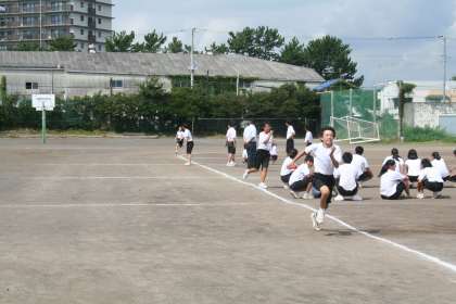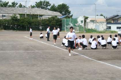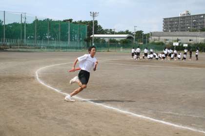 各クラスで、リレーのタイムを計っているようで、チーム新記録をめざして、必死に走っています。