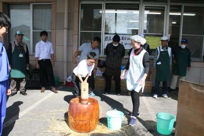 杵が結構重たいようで、ふらふらしていますが、頑張ってついています。ソフト部の子たちはなかなか腰が入っています。