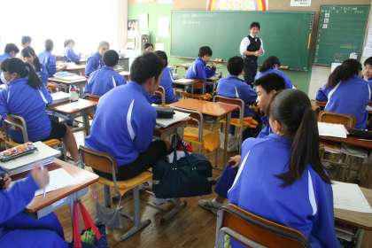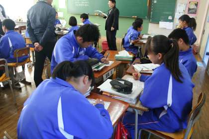 若手研修授業公開(3年B組)社会です。研修センターから田村師範がお見えになり、授業研修を参観くださいました。今泉先生の社会です。