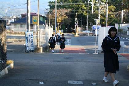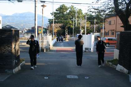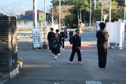 あいさつ運動に、生活委員と先生方が来てくれています。