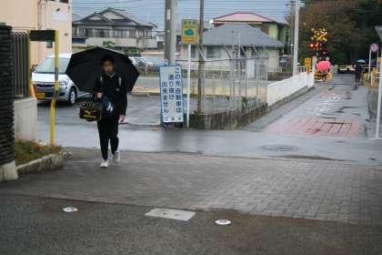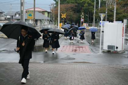 秋の長雨の後、好天の日が続きましたが、久々の雨という感じです。傘をさしての登校です。