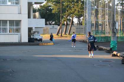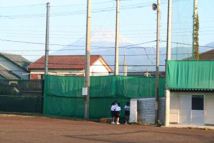 陸上部が朝練を始めるので、お手伝いに行きました。富士山が綺麗です。ソフトボール部が朝練の支度をしています。