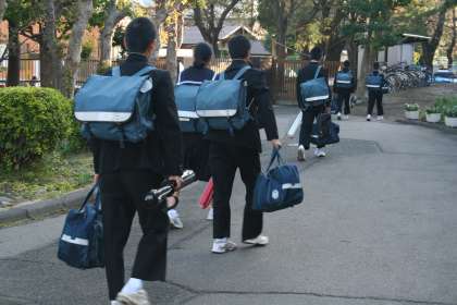 朝練を終えて、戻っていく野球部の生徒たちです。