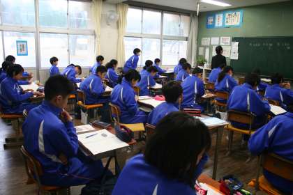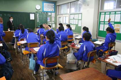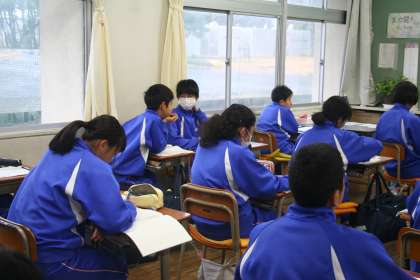 授業風景(1年B組)です。数学の授業中でした。多面体の図形の特徴を学習していました。