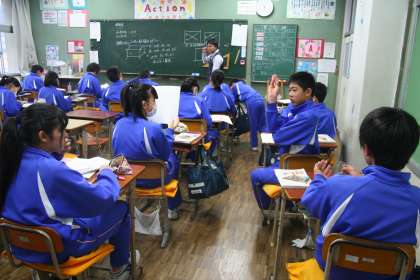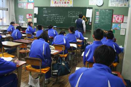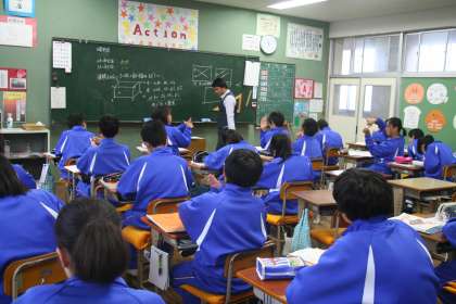 授業風景(1年A組)です。こちらも図形の学習です。平行線の書き方などもやっていました。相談タイムの様子です。