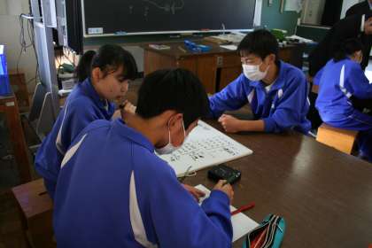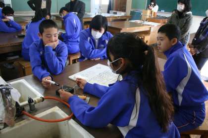 授業参観の様子(2年E組)です。理科の授業でした。電機の抵抗を学習中でしたが、ブラックボックスのような教材があって、楽しげでした。わたしもやりたかったくらいです。