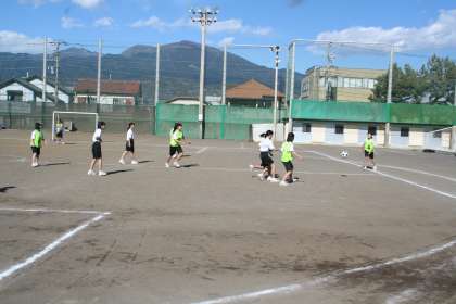 授業風景(1年A組)です。サッカーの試合を見てきました。女子の試合も白熱していました。シュートが決まりました。