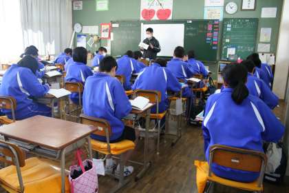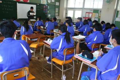 授業風景(2年A組)です。英語の時間でした。2年生になると、知らない英単語も出てくるので、一緒に発音してきました。2年A組も今日から学級閉鎖解除で、友達が集まり嬉しそうです。