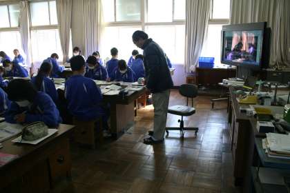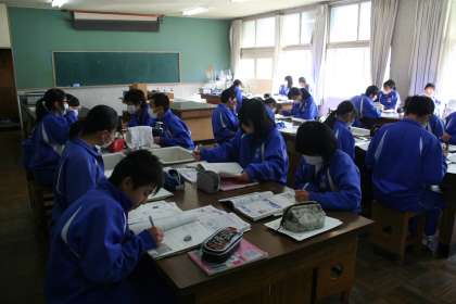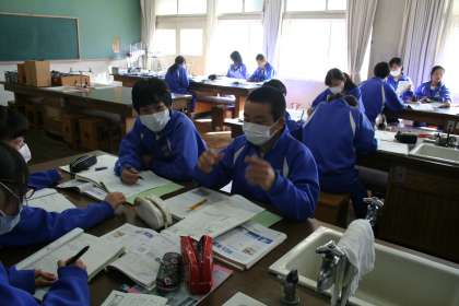 授業風景(2年C組)です。理科の学習です。お天気のことを学習中です。
