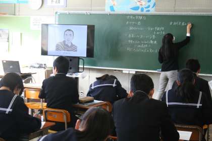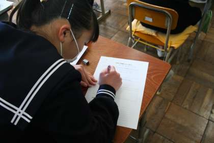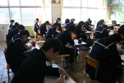 授業風景(3年C組)です。火曜日の1時間目は道徳です。副読本のないようでしょうか、海外の生徒の文を教材に学習を進めていました。