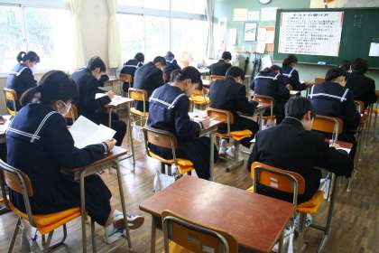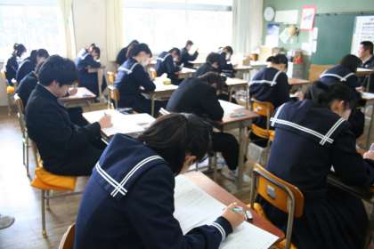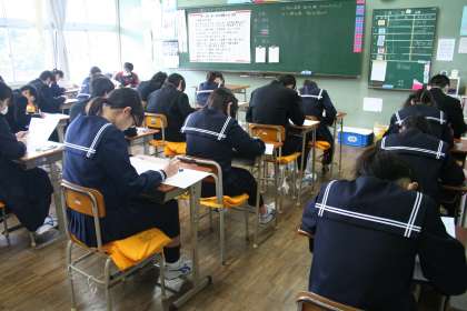 2年生もしーんと静まりかえった教室で、黙々とテストに挑戦しています。