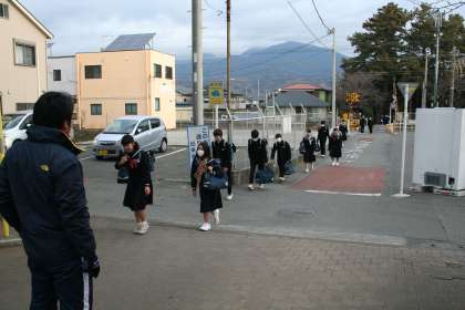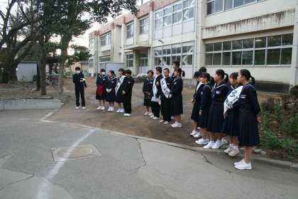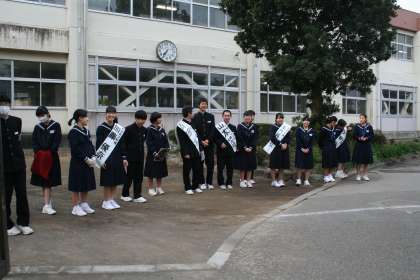 週明けの月曜日です。今日から学級閉鎖が全て解け、全クラス登校です。正門に向かうと、新年度生徒会立候補者が、あいさつを兼ね、選挙運動を展開中でした。