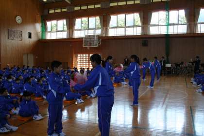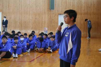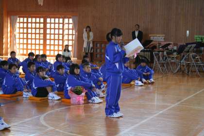 1年生の各クラスに、カランコエの鉢植えがプレゼントされました。1年生の代表からお礼の言葉があり、会も終了しました。在校生の頑張りが伝わってきました。