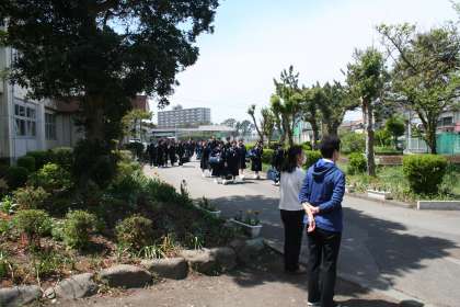 先生方も生徒玄関、正門前などに出て、下校指導です。