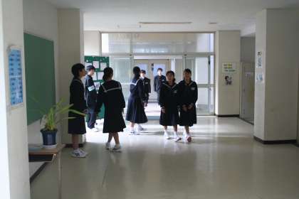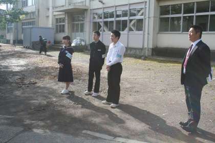 週明けの月曜日です。1,3年生の生徒玄関には、1年生の生活委員があいさつ運動を始めていました。正門では、2,3年生の生活委員があいさつ運動を実施していました。