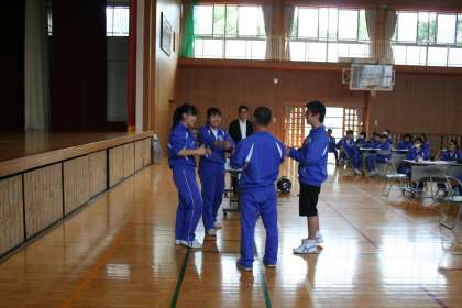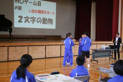 本日放課後、生徒会主導で、前期リーダー講習会が開催されました。途中からでしたが、アイスブレイクの意味で、ゲームを行いました。リーダーがお手本を見せました。