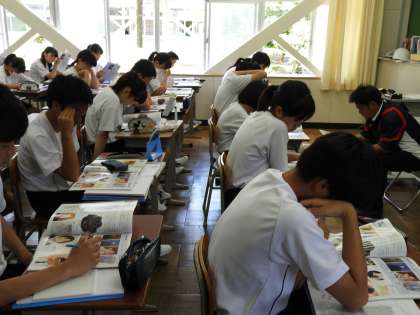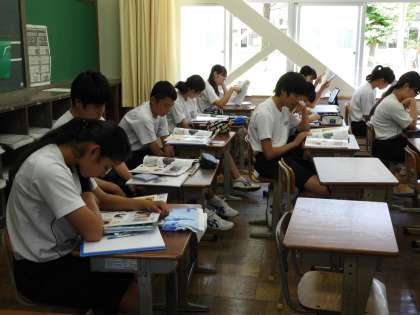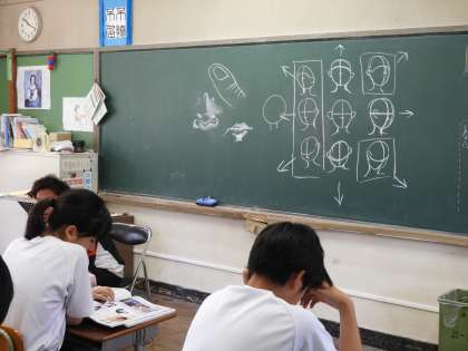授業風景(3年D組)美術です。人物画を見て、その表情や姿から背景を読んでいました。おもしろい授業でした。