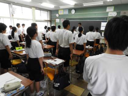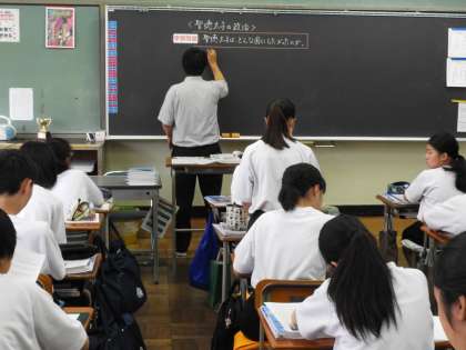 4年目の若手教員研修が、昨日に続いて実施されました。本日は昨日の芝研修アドバイザーに続いて、竹内研修アドバイザーがお見えになりました。1年D組で、山田先生が社会の授業を見ていただきました。