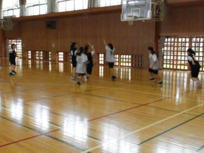 体育館に向かいました。昨日は、男女のバスケットが使っていました。ミニゲームを頑張っていました。