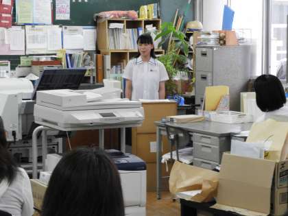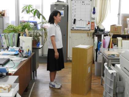 朝の職員の打合せに「わたしの主張大会」に出場する生徒が発表の予行練習に来ました。障害者に関わる素晴らしい内容の発表でした。本番は、明日、13時半から市民文化センターで行われます。お時間のある方は、ぜひ中学生の熱いメッセージを聞きに来てください。