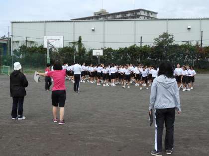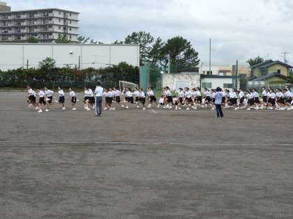 本日は潮騒祭 体育の部 学年練習がセットされています。1,2時間目、1年生が運動場で練習していました。雨が上がって本当に助かりました。