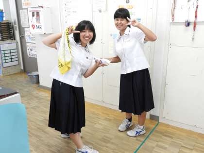 本日、午後から英語弁論大会が開催されます。出場の2人は、先に給食を済ませ、会場に向かいます。出発前に和むように伝えました。笑顔で出発です。